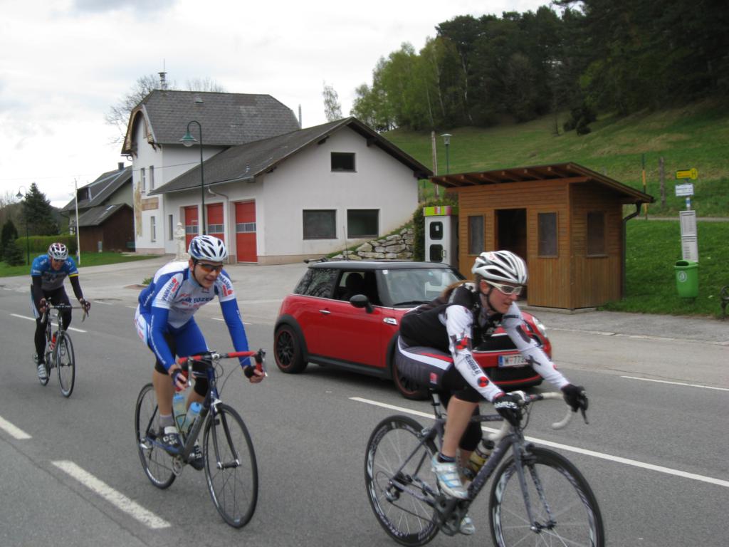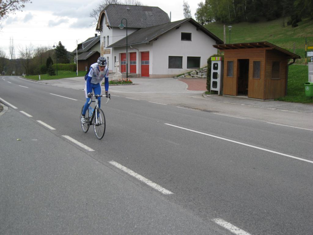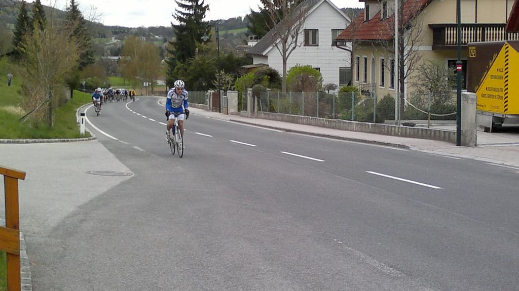 Beim Start in Mödling war es zwar kühl und windig, jedoch noch trocken. Ab Altenmarkt begann es jedoch immer mehr zu regnen. Bei Geschwindigkeiten von mehr als 70km/h und nasser Kleidung war es dann auch extrem kalt. Trotzdem konnten wir gute Leistungen erzielen. Allen voran Martin Mayer, der mit nur 30 Sekunden Rückstand in der ersten Verfolgergruppe das Ziel errichte.