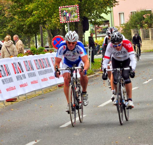 Es waren viele bekannte Gesichter am Start und um 13Uhr, gleich nach Ende der Sierenenübung ging es los. Einige hatten wohl die Sirene in den Ohren und Beinen, weil es wie erwartet schnell den ersten Berg raufging. Ich konnte jedoch in der ersten Bergabpassage sofort zur Spitze aufschließen und konnte bis zur 6. Runde jeden der zahlreichen Angriffe mitgehen. Im Anstieg der 7. Runde dann der Angriff des Vorjahressiegers und Ex-Profis Petr Herman. Das schon sehr dezimierte Feld wurde nochmals zerrissen und es bildete sich kleine Gruppen. Einzig Moritz Gelosky (Union NÖ) konnte dem Tschechen folgen. Ich fand mich in einer 4-Mann Gruppe, die gut harmonierte. Wir konnten auf der Zielgeraden zwar noch einen Mitstreiter abfangen, doch zur Spitze, die wir auf der Zielgeraden vor uns sahen, aufzuschließen, war unmöglich. Der Zieleinlauf war aufgrund überrundeter Fahrer gar nicht so ungefährlich, doch es lief alles gut und wir konnten Stürze vermeiden. Ich sprintete auf den 7. Platz und war sehr zufrieden. 37,4 km/h Schnitt.